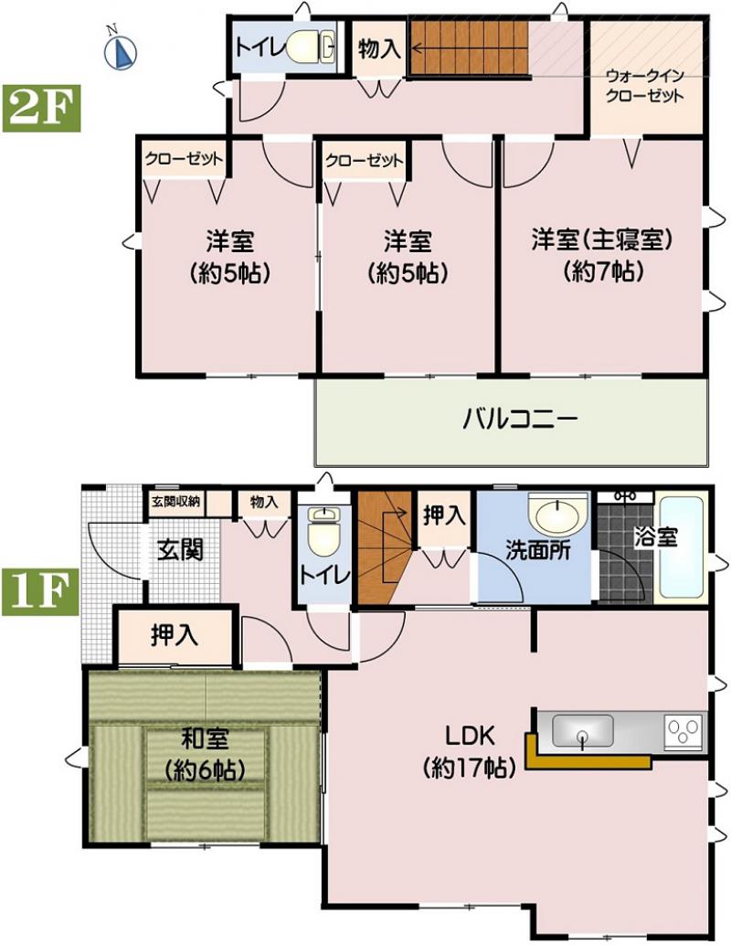 建物面積 | 1F 56.72㎡ 2F 44.71㎡ 延床 101.43㎡(30.68坪) |