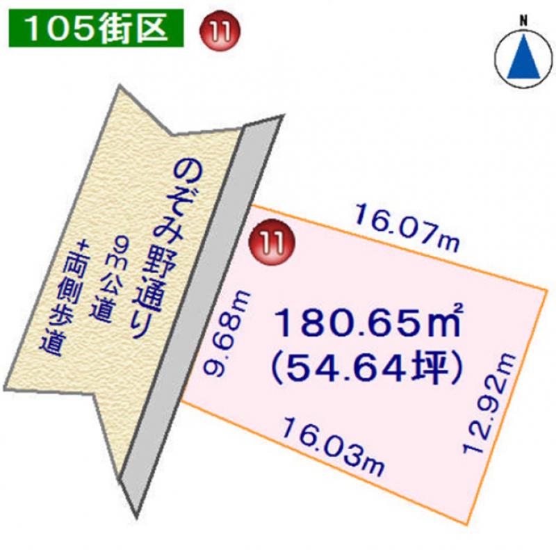 接道(幅員/方角/接面) | 約9m公道+歩道 / 北西 / 約9.68m |
