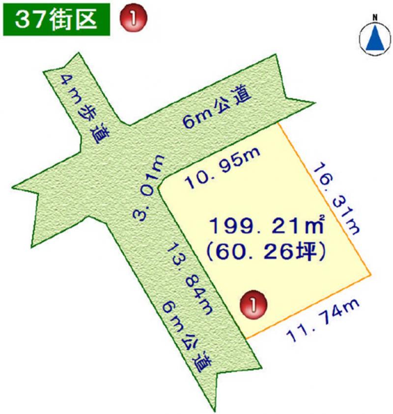 接道(幅員/方角/接面) | 約6m公道 / 北西・南西(角地) / 約27.80m |