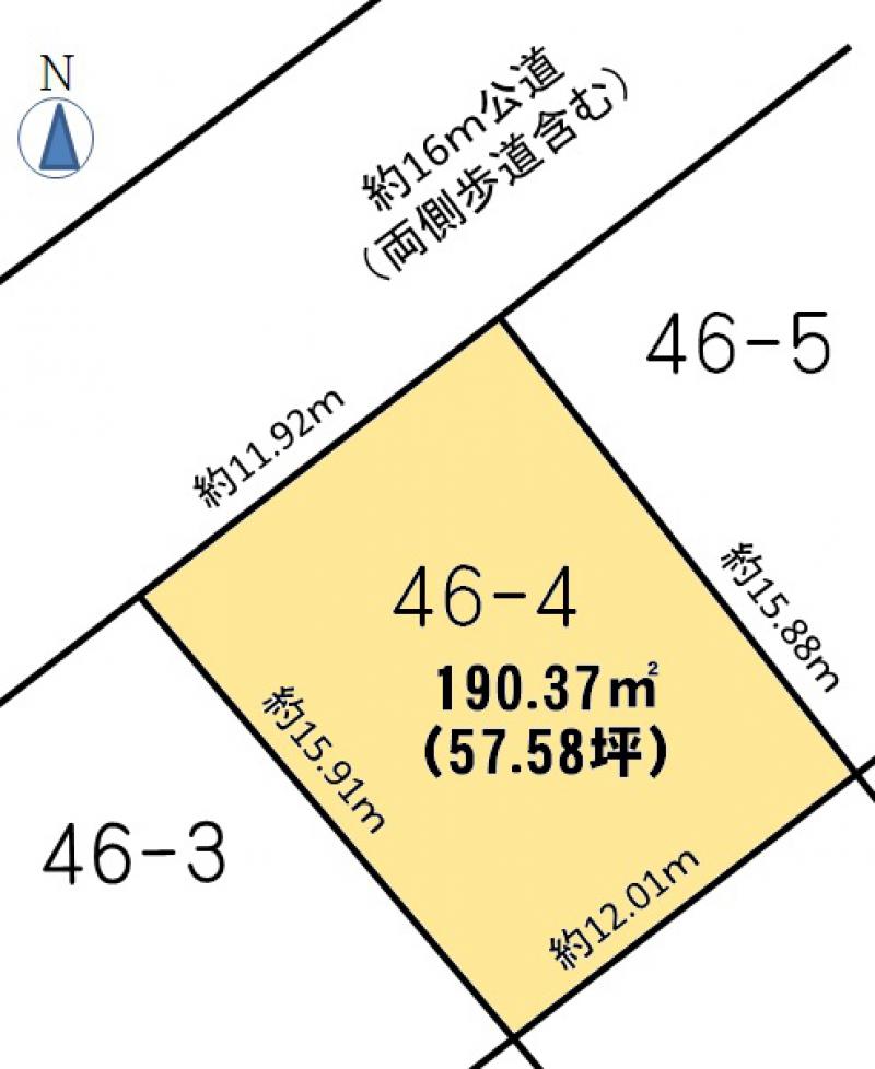 接道(幅員/方角/接面) | 約16m公道 / 北西 / 約11.92m |