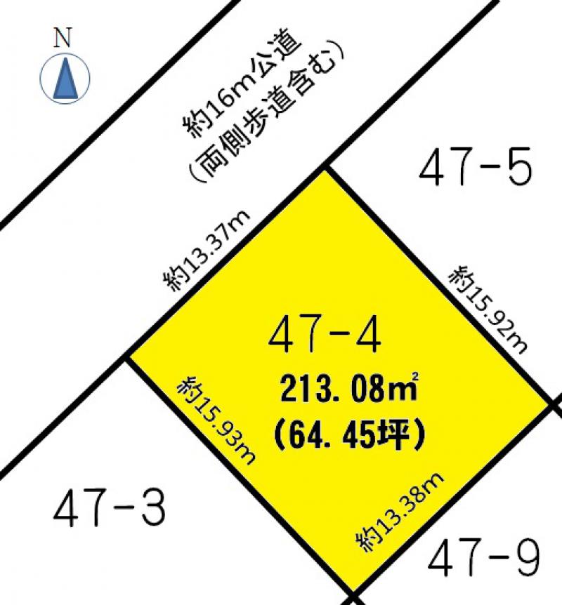 接道(幅員/方角/接面) | 約16m公道 / 北西 / 約13.37m |