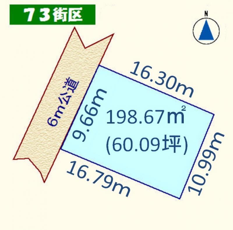 接道(幅員/方角/接面) | 約6m公道 / 北西 / 約9.66m |