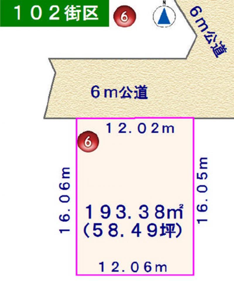 接道(幅員/方角/接面) | 約6m公道 / 北 / 約12.02m |