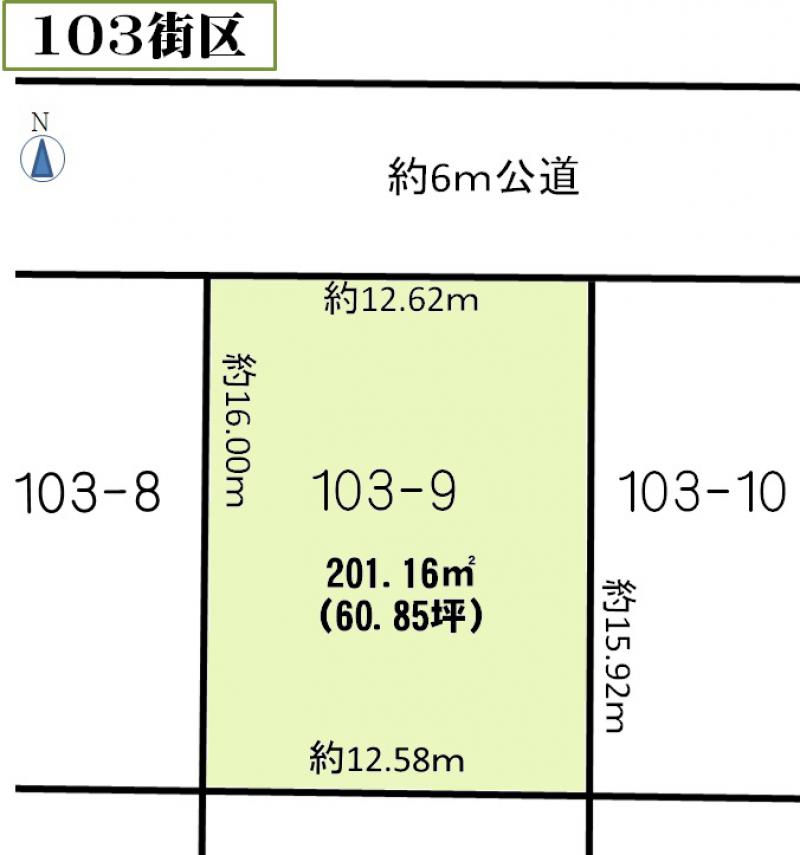 接道(幅員/方角/接面) | 約6m公道 / 北 / 約12.62m |