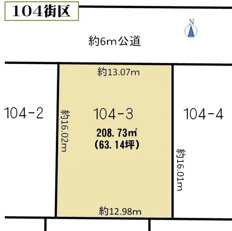 接道(幅員/方角/接面) | 約6m公道 / 北 / 約13.07m |